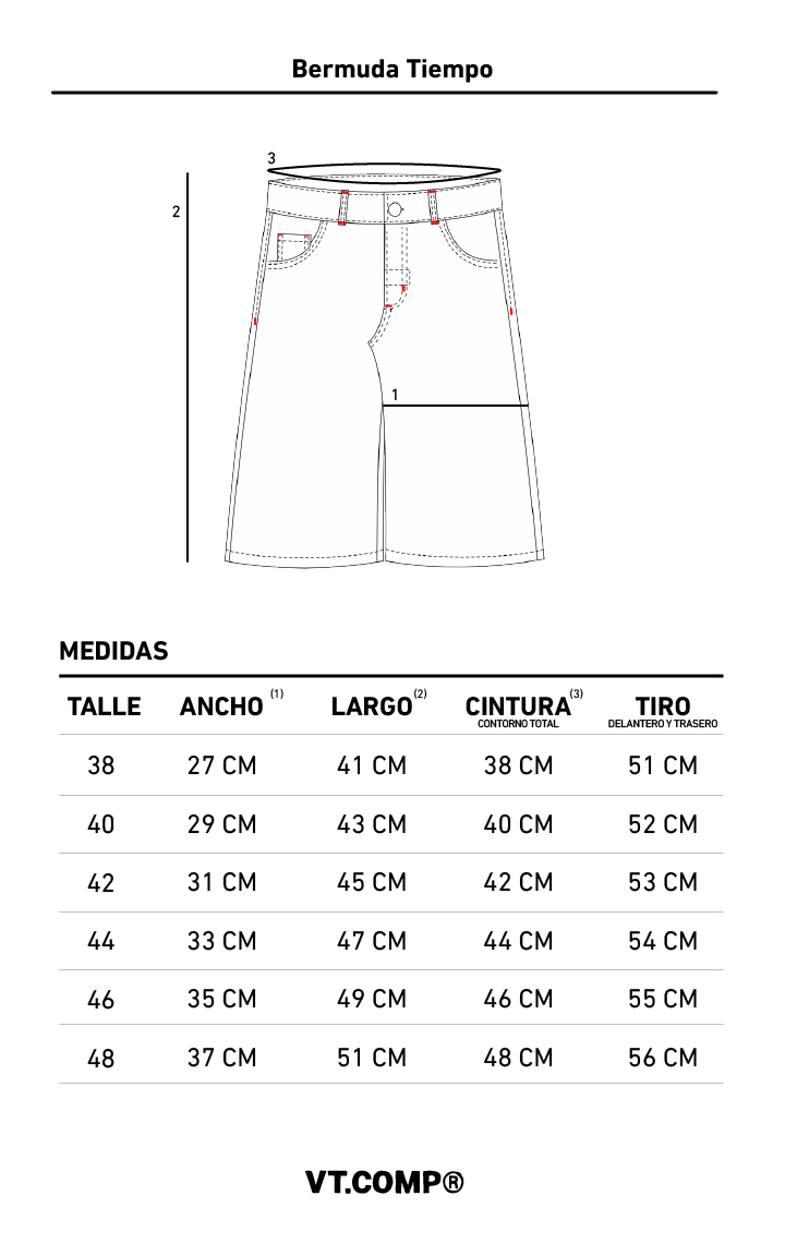 Las medidas están tomadas en plano (no contorno, ni medidas del cuerpo) sobre la prenda. Podés comparar las medidas con una prenda que tengas. En este caso, te recomendamos que sea de tela y calce similar, y que este recién lavada o no se encuentre estirada por el uso.