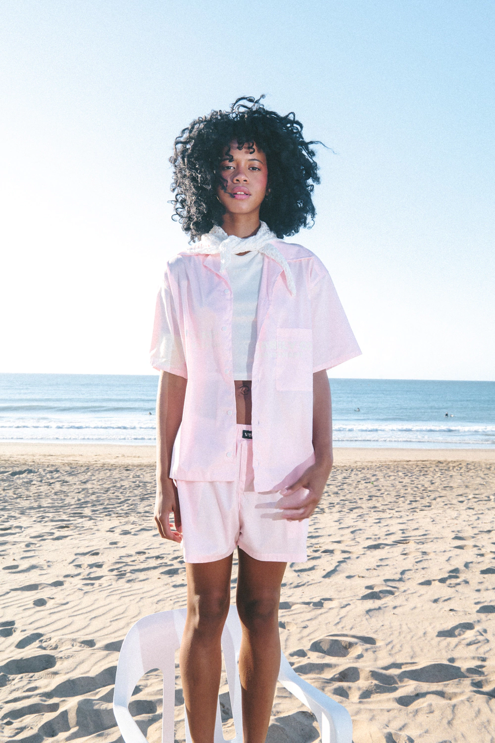Confeccionado poplin rosa 97% algodón y 3% spandex.