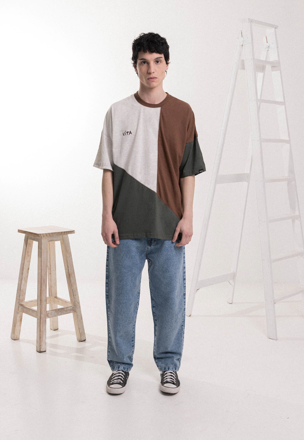 Confeccionada en jersey 24/1, color gris medio, verde y chocolate. Algodón 50% poliéster 50%.